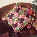 This unusual cushion is handmade using gorgeous African fabric. It is printed using traditional wax printing methods, and given a very cool contemporary twist in the design.