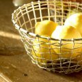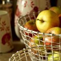 Wire mesh baskets or bowls in distressed white finish.