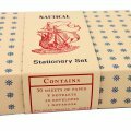 This gorgeous Nautical Stationery Set is hand-printed in the UK using traditional printing methods like woodblock type and brass picture blocks. It has a gorgeous vintage feel and a healthy supply of correspondence related ephemera - envelopes, cards, letter paper, notelets and a notebook - all printed with different themed designs like a ship's wheel, anchors and galleons.